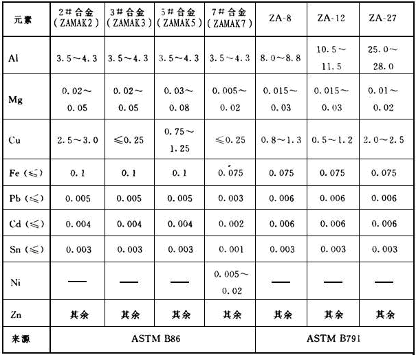 ZAMAK 2、ZAMAK 3、ZAMAK5 ZAMAK 7。 And for ZA series are ZA-8、ZA-12、ZA-27 ZA-35。